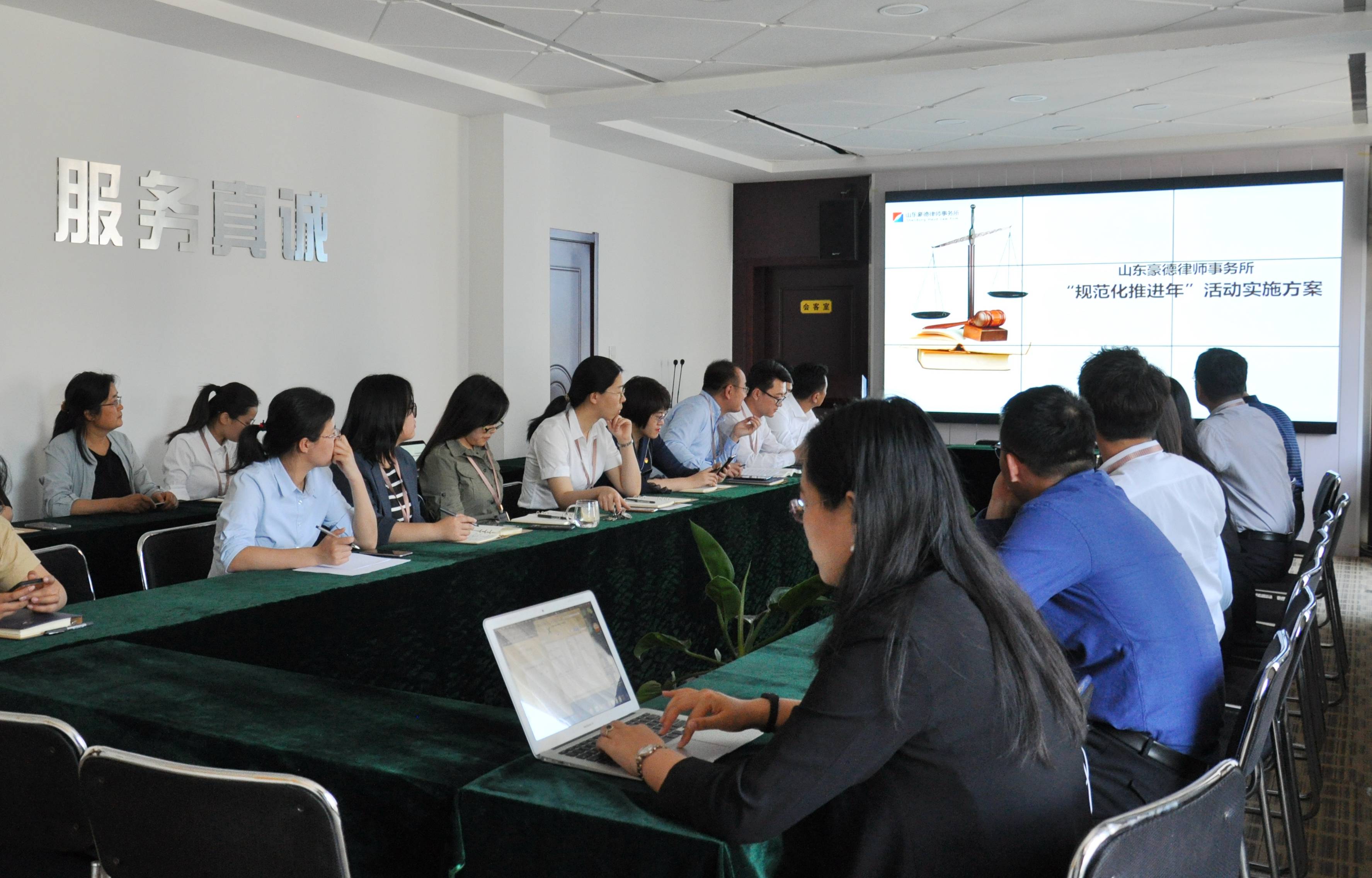 2019年5月22日下午,山东豪德律师事务所在五楼多功能会议室召开全体工作人员会议,会议由我所党支部书记冯伟明主持,付兴刚主任及全体员工列席会议。本次会议主要内容是传达市司法局、市律协下发的“规范化推进年”活动实施方案通知及律所各项活动安排。