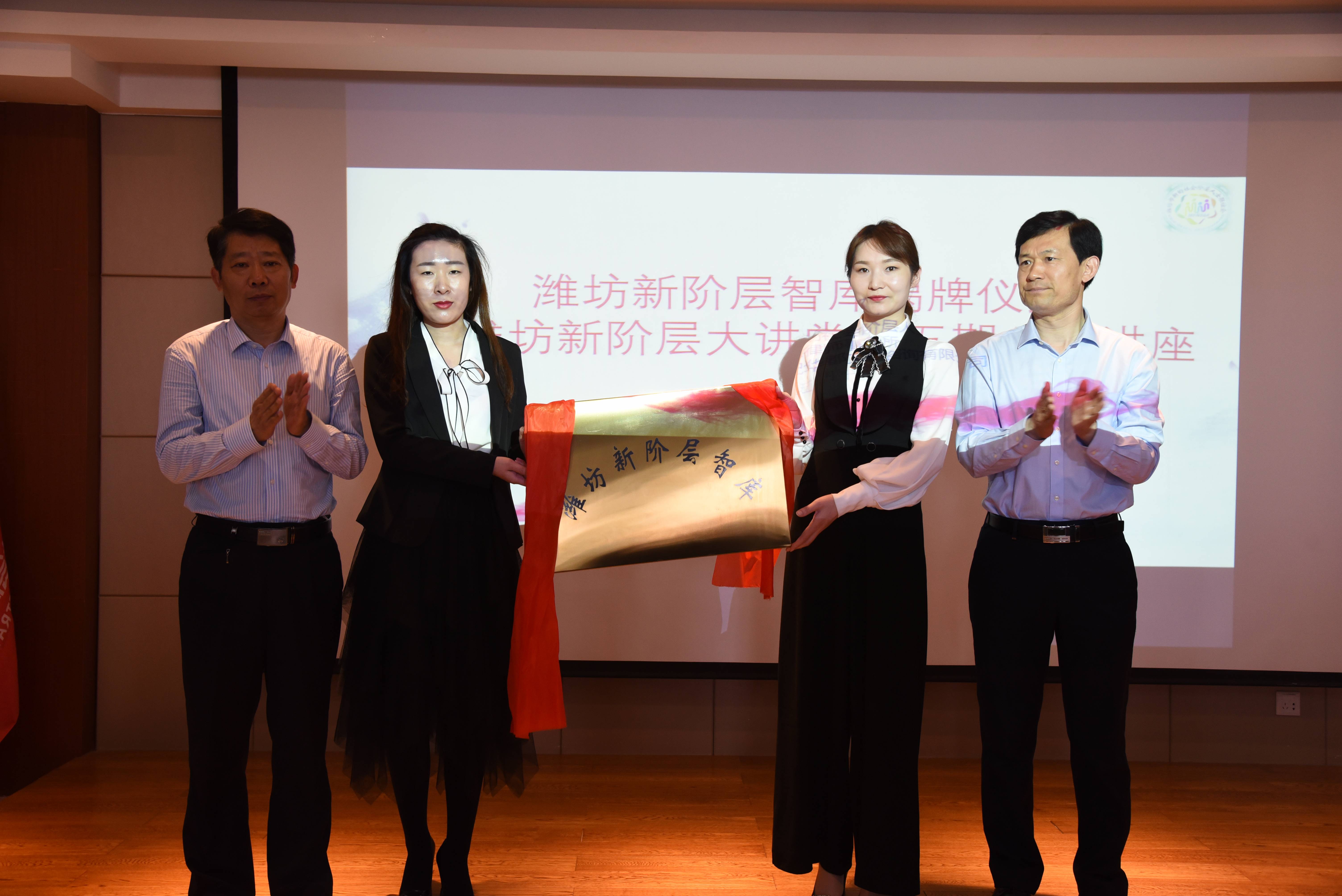 论坛第一项是由潍坊市委统战部领导许朋礼,潍坊市新的社会阶层人士联谊会会长王建国共同对潍坊新阶层智库进行揭牌。