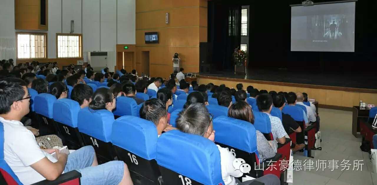2016年8月28日,由山东豪德律师事务所主办的现代企业劳动用工法律论坛暨豪德律师事务所8周年感恩活动在潍坊学院音乐学院报告厅举行,潍坊市委政法委副书记、市法学会会长秦景岗、潍坊市政府法制办公室党组书记、主任高成勇、潍坊市法学会副会长兼秘书长葛金军、潍坊市政府法制办公室党组成员、副主任李清环、高强、潍坊市司法局副局长牟令岱等领导受邀出席了本次论坛活动,潍坊市企业家代表、律师同仁、媒体朋友等200余人共同参加了此次论坛,同时论坛邀请了豪德律所合作伙伴北京市元甲律师事务所主任黄维领和北京菲雅科技有限公司总经理林光明出席。论坛特邀上海江三角律师事务所陆敬波主任给大家做了《企业劳动用工十大风险》的主题讲座,讲座主要针对企业用工的事实劳动关系、试用期、工资欠付、违法加班、年休假、调岗调薪、工伤、规章制度无效、劳务派遣转外包、违法解雇等十大风险如何防范进行讲解,理论深刻、案例生动,获得了大家的一致认可和高度赞扬。