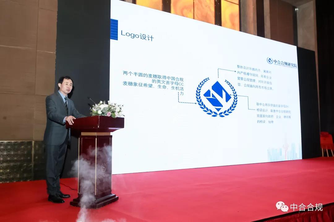 中合合规研究院理事长、山东豪德律师事务所主任付兴刚就研究院的成立情况向大家进行了介绍,并结合研究院LOGO的设计理念向大家介绍了研究院的合规理念及成立宗旨。